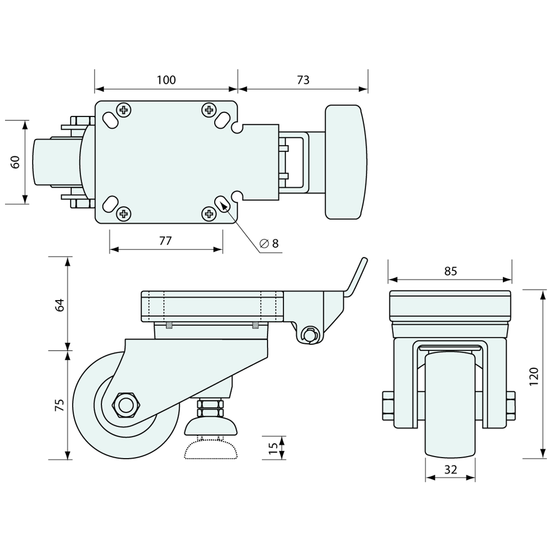 • Levelling castor with integrated foot lock