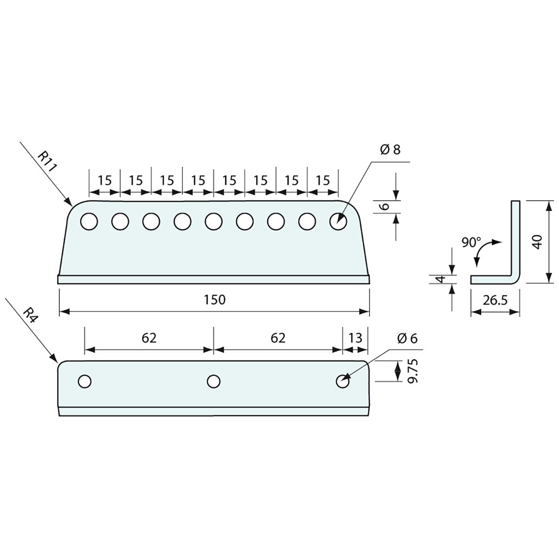 Adjustable Gas Strut Bracket Stainless Steel 150mm