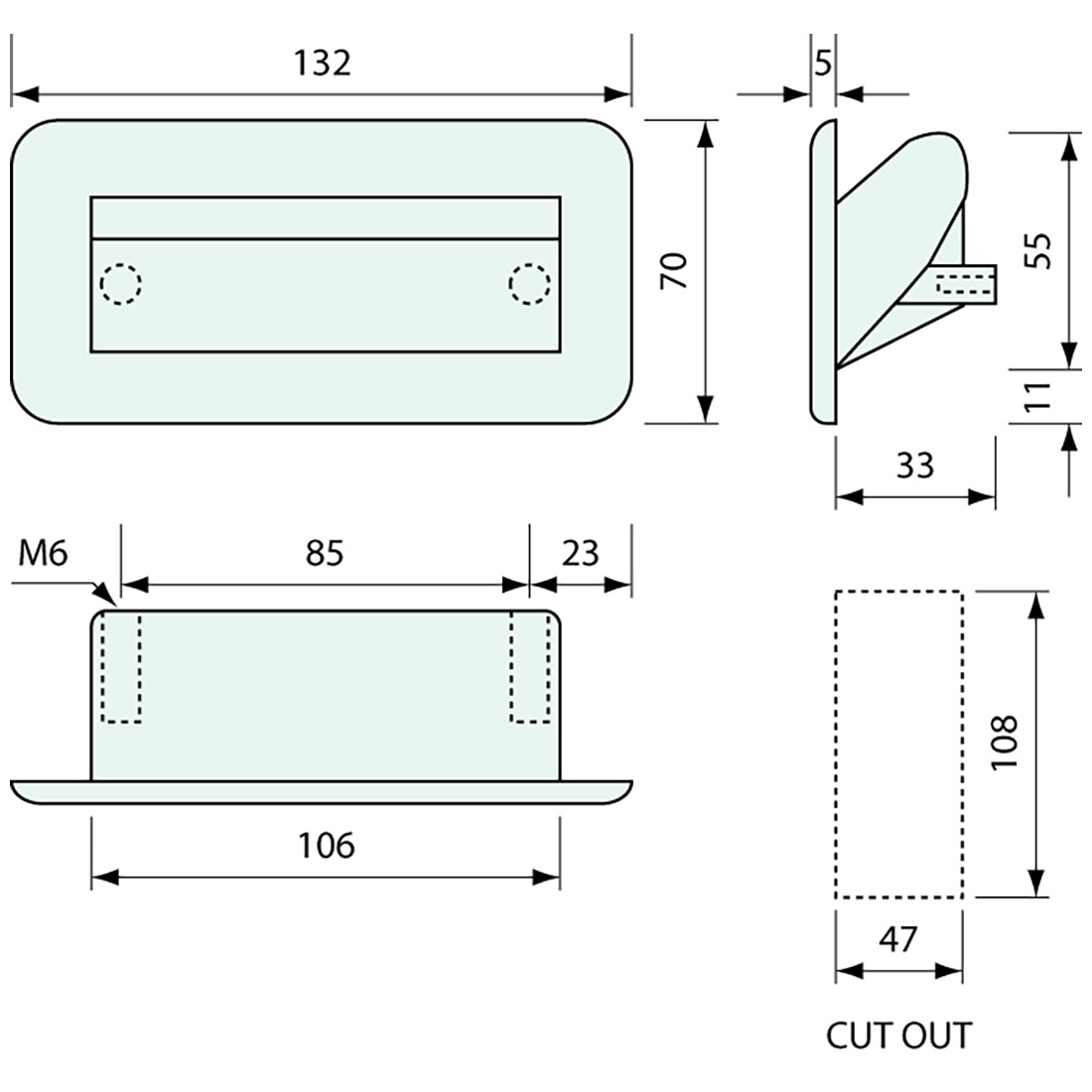 Flush Recessed Grab Handle Powdercoated Steel 220mm