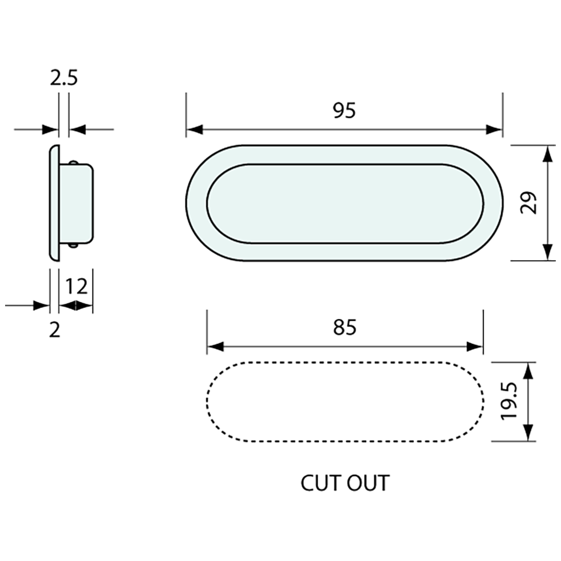 • Economical flush pull designed for clipping into sheetmetal panel hole
