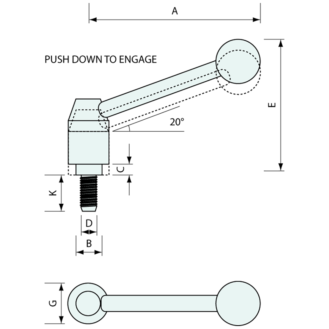 • The tension lever engages in the serration only after pushing it down thus allowing clamping or unclamping.