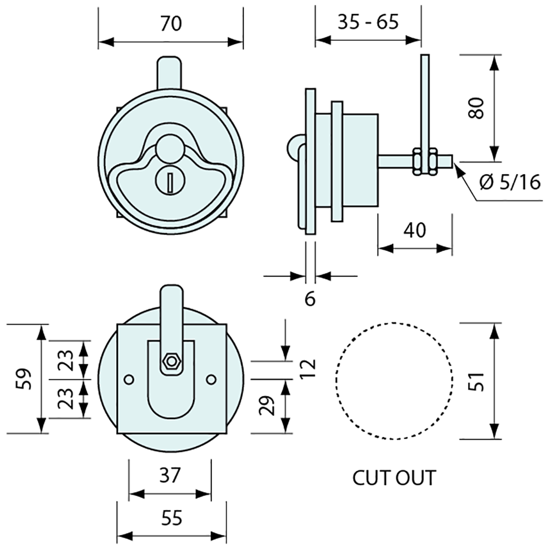 Flush Recessed Lock Int Handle Keylocking Stainless Steel