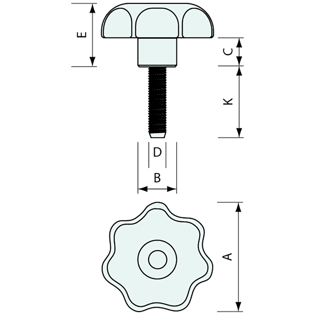 Star Knob Stainless Steel Ext Thread 30mm M6