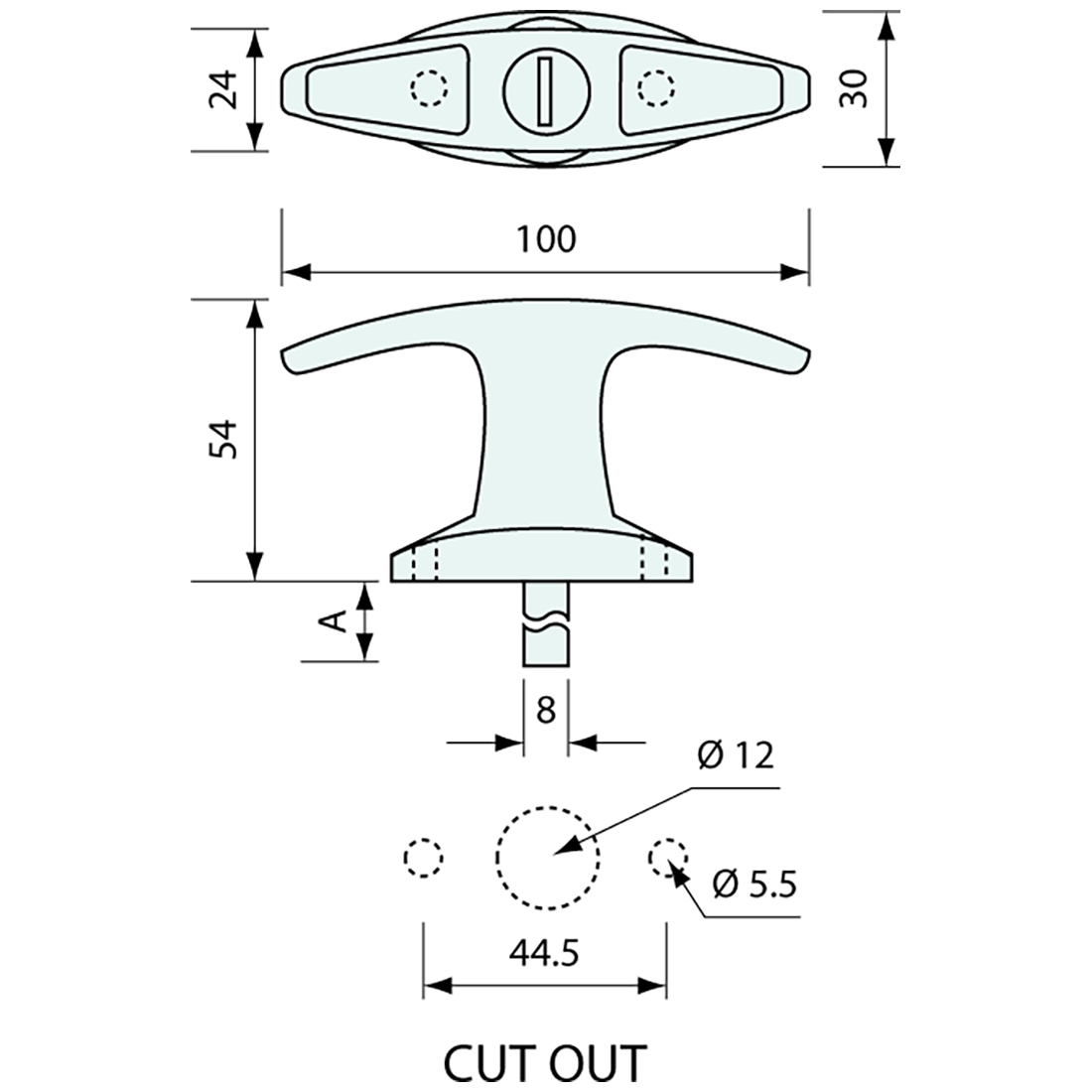 T Handle Locking Rear Fix 180deg Chrome 30x100mm