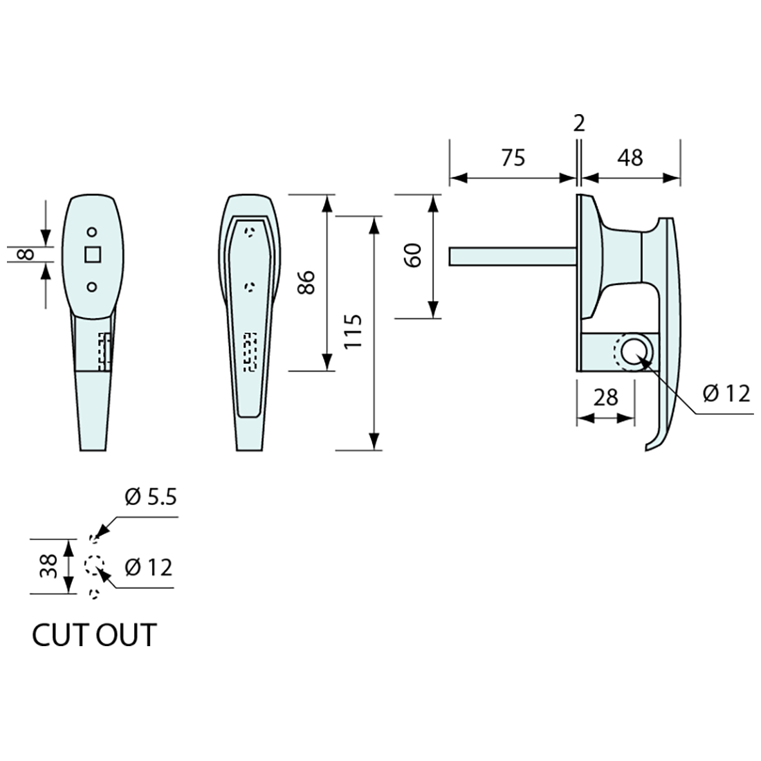 Flush Recessed Lock Int Handle Keylocking Stainless Steel