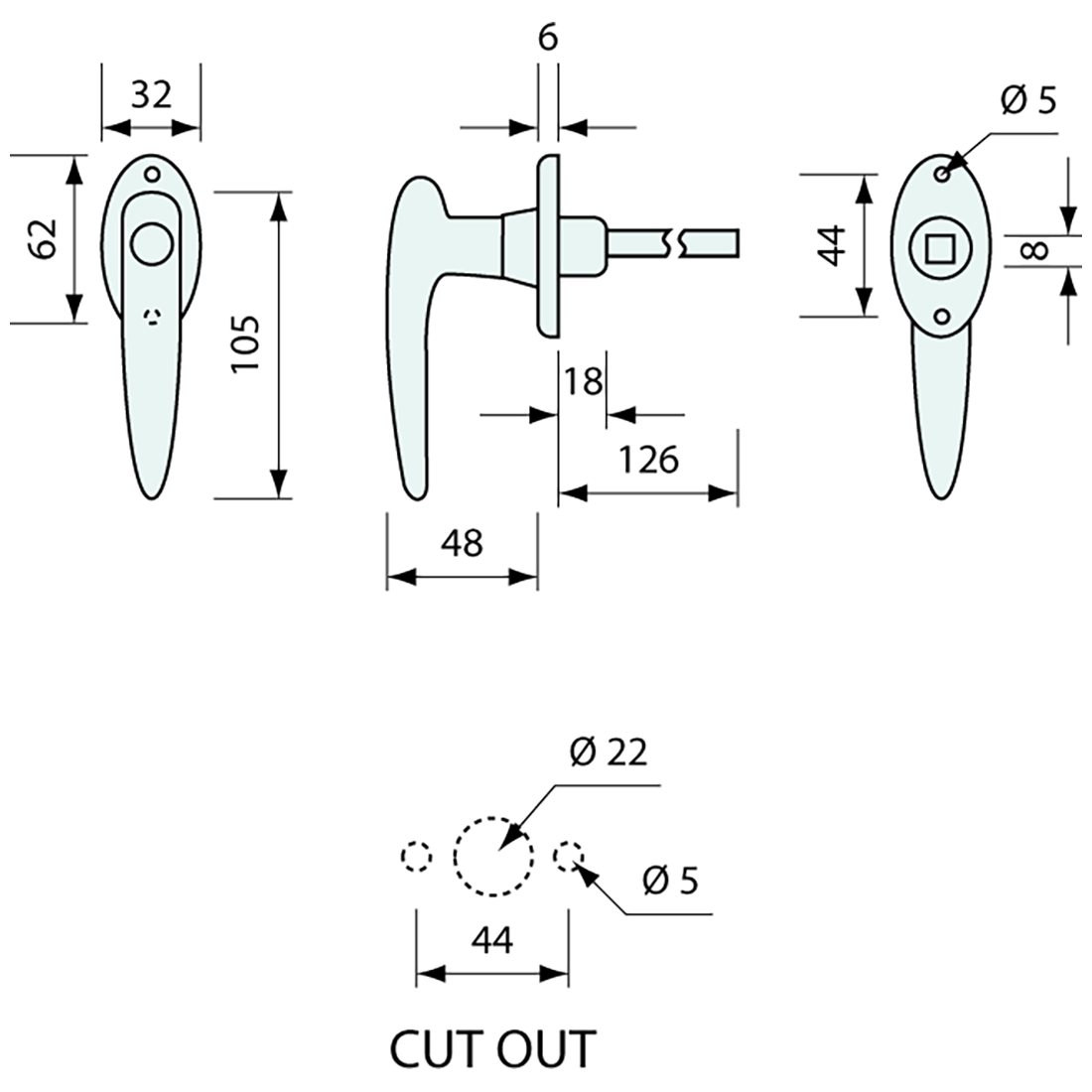 L Handle Non Locking Front Fix 360deg Chrome 105mm
