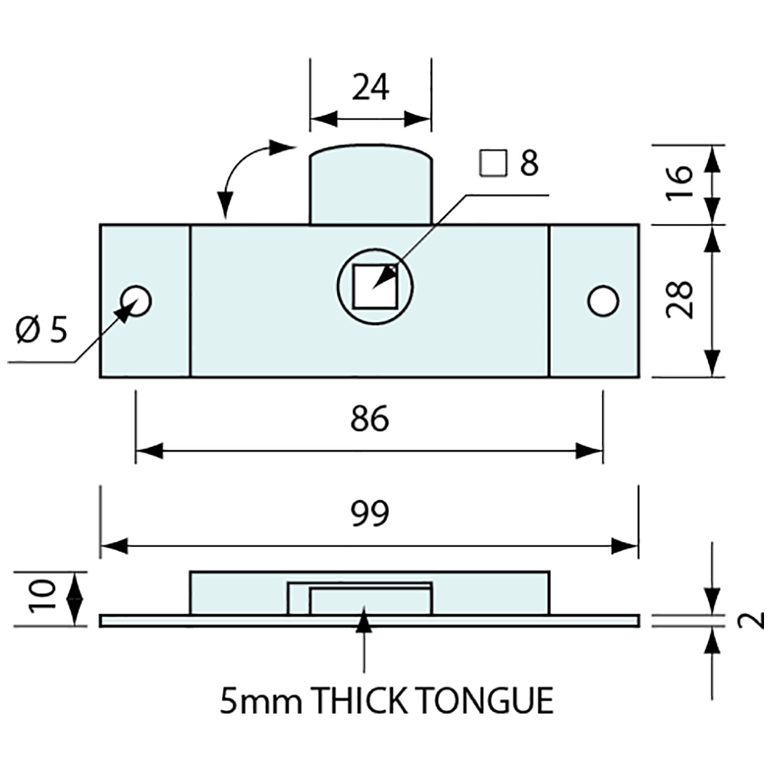 Symetrical Latch, Square Shaft Deadbolt Latch, Mirror Latch, Symetrical Deadbolt Latch