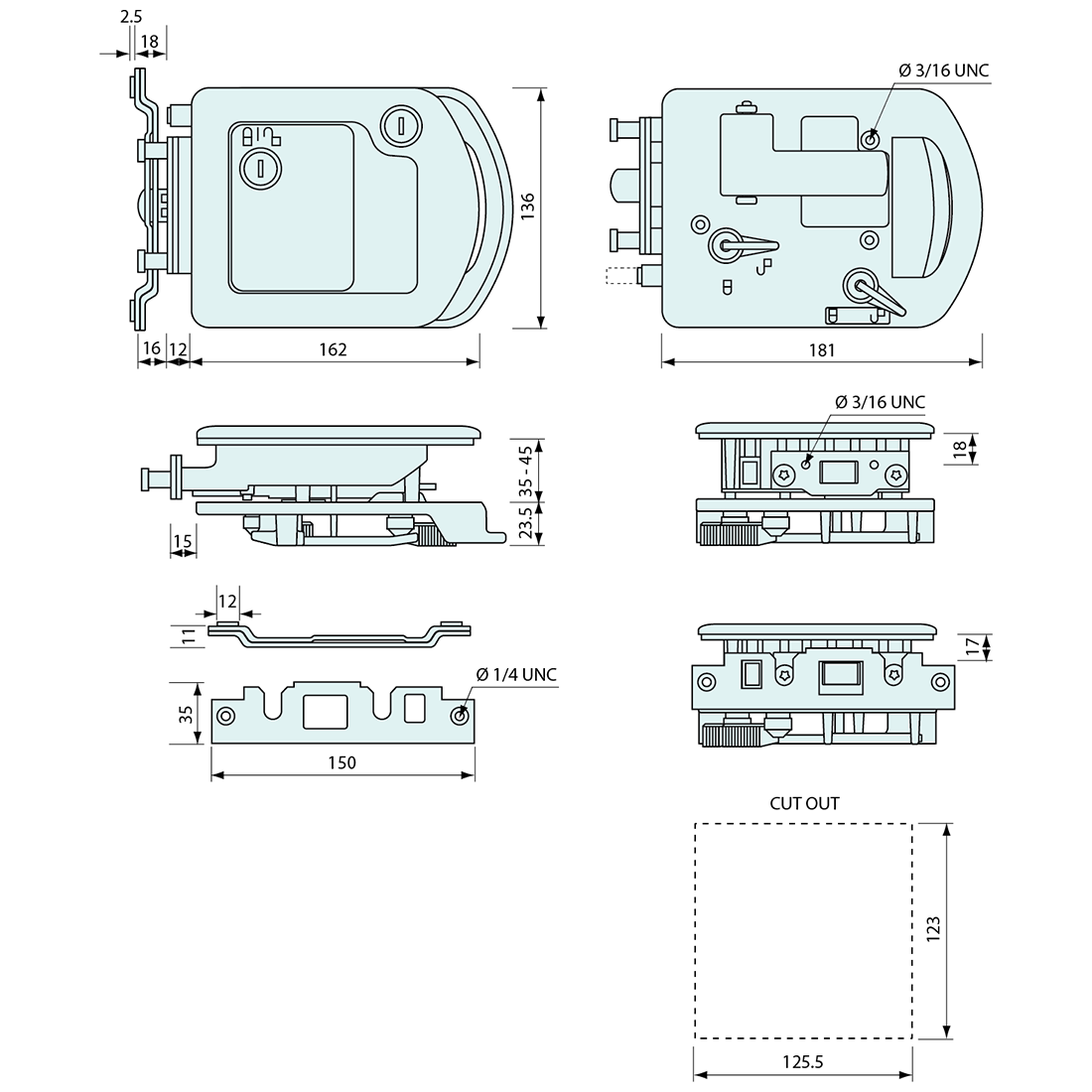 Paddle Latch Baggage Lock Free Float Black Zinc Diecast 127x177mm