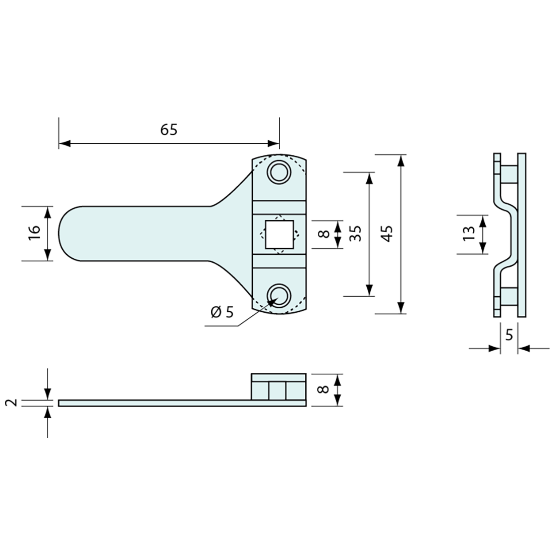 • Zinc Plated Steel • 8mm square shank hole • Fits 4507 rods page J9