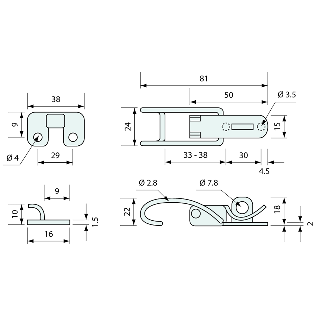 Hold Down Latch Padlockable Stainless Steel 50mm