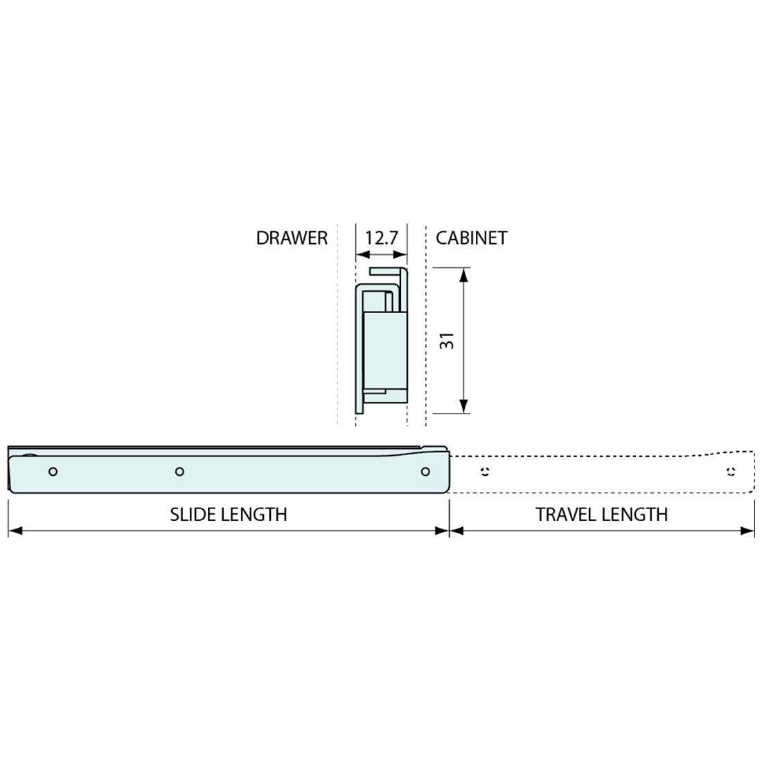 Drawer Slides Pair Stainless Steel 546mm 15kg Load