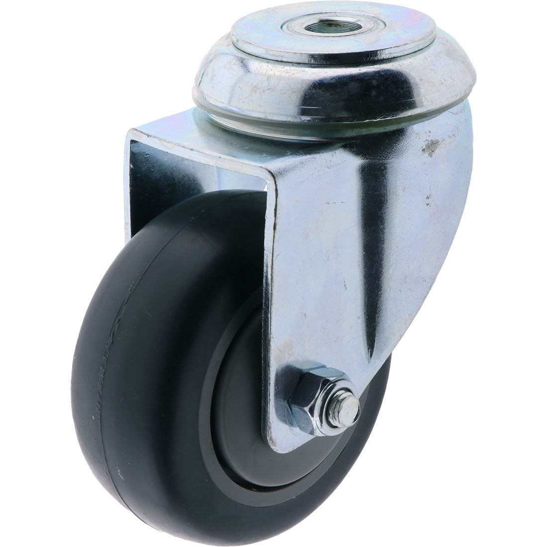 Bolt Hole Castors Swivel Rubber Wheel Zinc 75mm M12