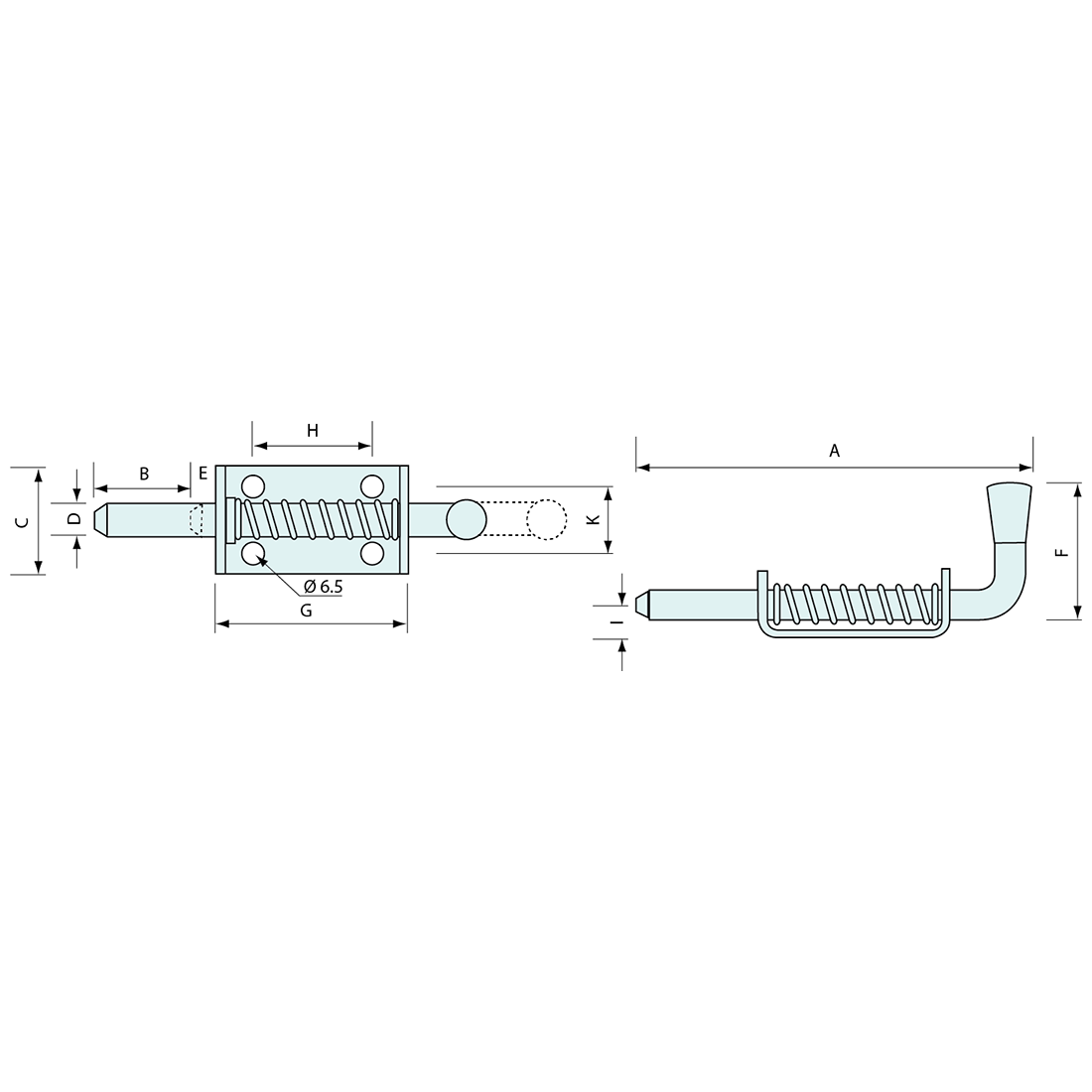 Spring Bolt Stainless Steel 225mm 16mm Pin