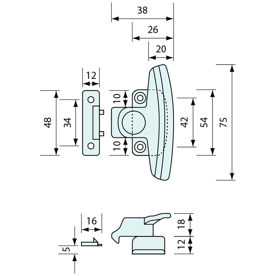 Hook Handle Slam Catch, Sliding Window Handle and Strike, Black Canopy Sliding Window Catch