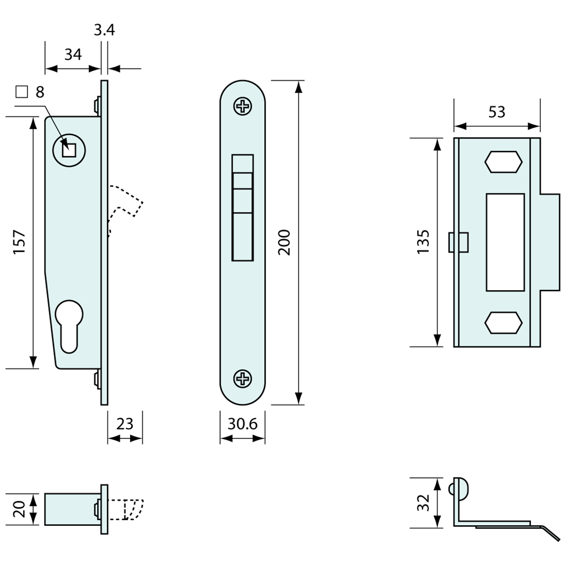 • Kit includes lock body, lock keep, double key Euro Cylinder, face plate, cover plates