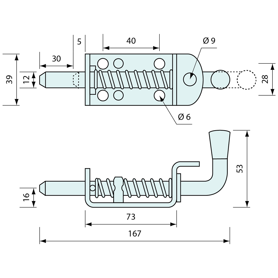 Spring Bolt Stainless Steel 166mm 12mm Pin