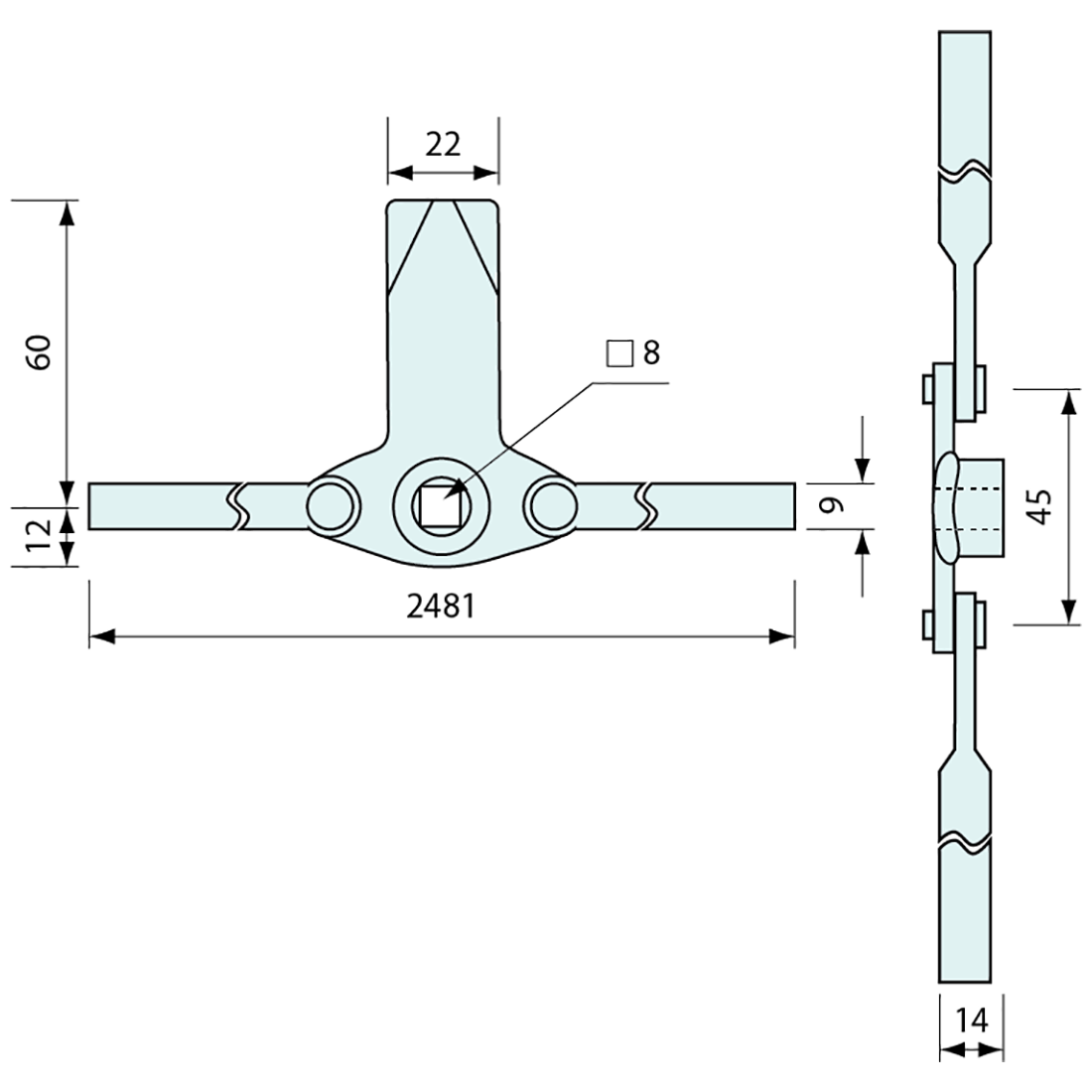 Rod Lock, Internal Garage Door Latch with Arms, Spring Action Rod Latch, Two Way Rod Latch, Garage Door Road Latches, Square Shaft Rod Latch