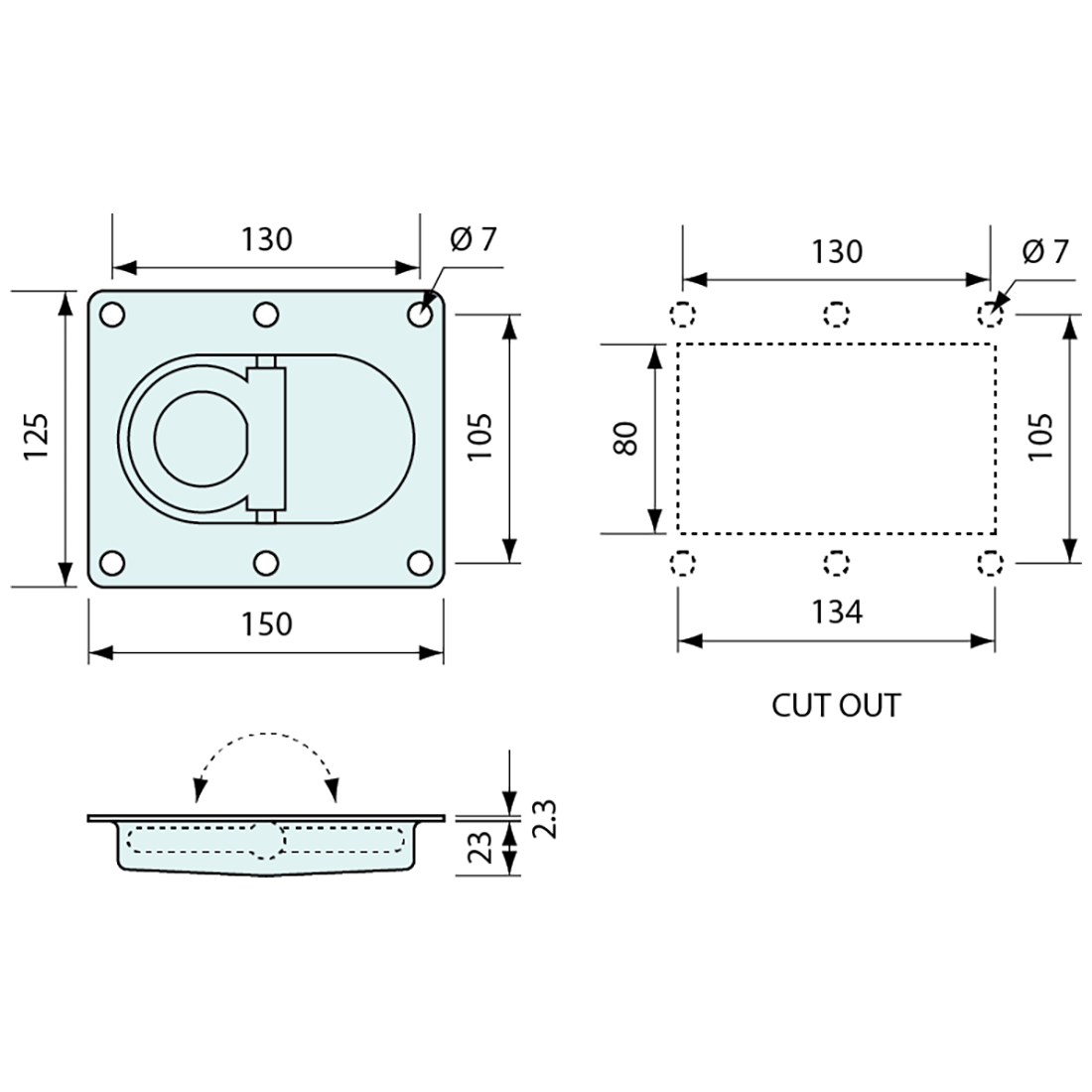 Cargo Loop, Flush Rope Ring, SS Recessed Ring Pull, Stainless Spring Loaded Rope Ring, Lashing Ring