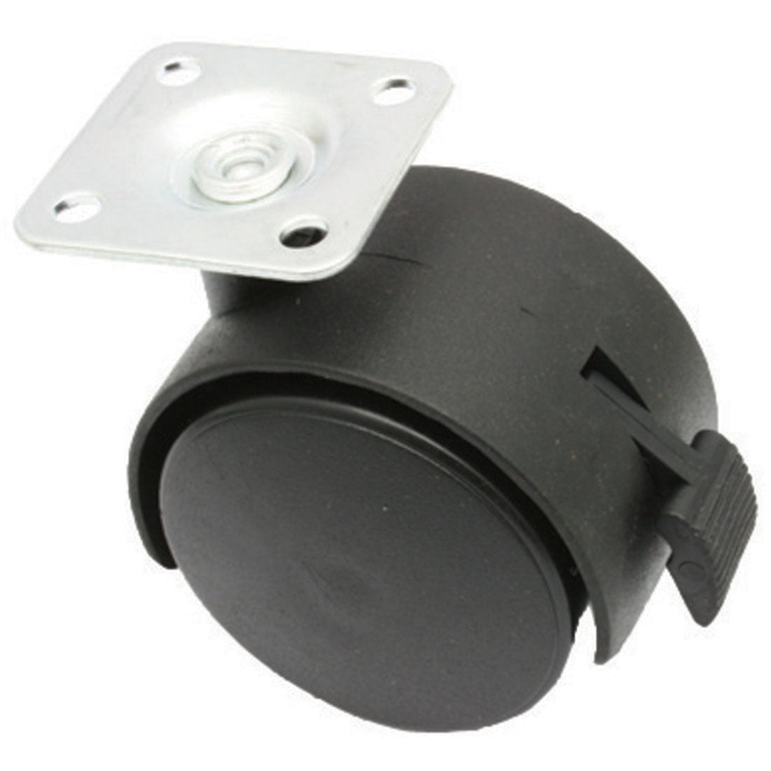 Castor Wheel and Mounting Plate and Brake Black 75mm