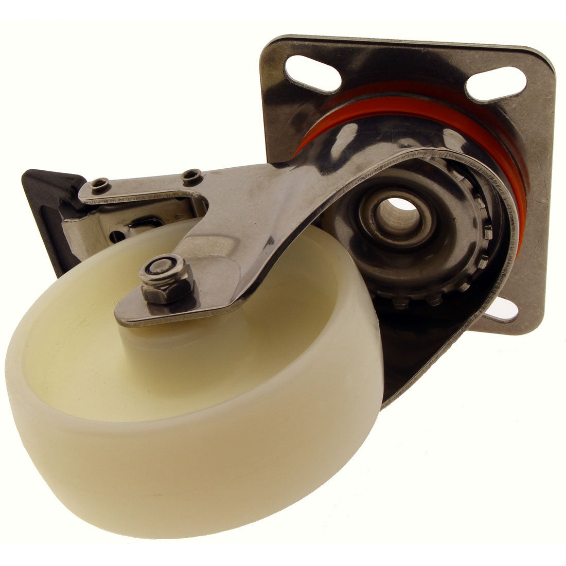 Mounting Plate Castor Swivel and Brake Nylon Wheel Stainless Steel 100mm