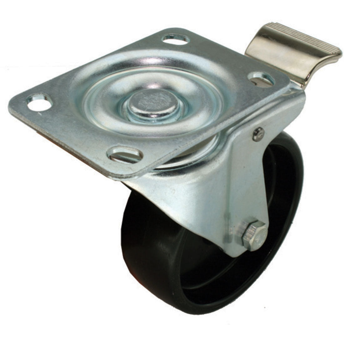 Mounting Plate Castor Swivel and Brake Nylon Wheel Zinc Plated 75mm