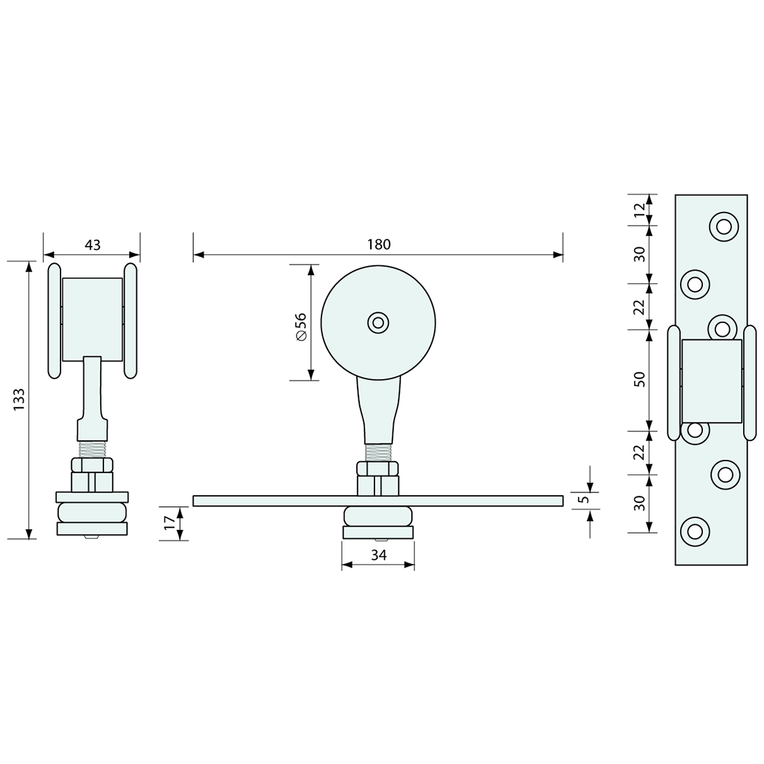 2 Wheel Bifold Door Trolley With Pivot Plate Zinc 100kg
