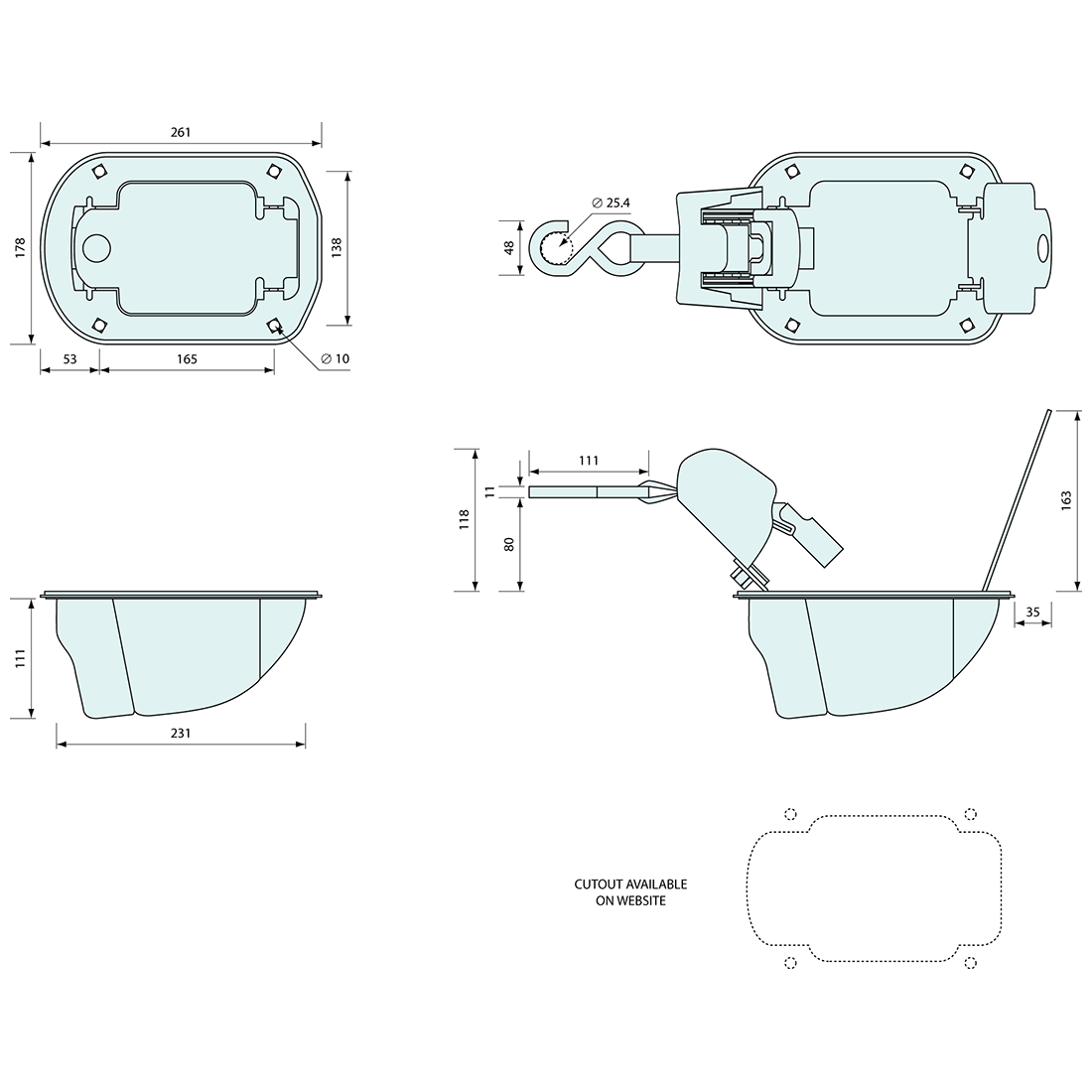 Retractable Flush Tie Down 50mm Web 178x261mm