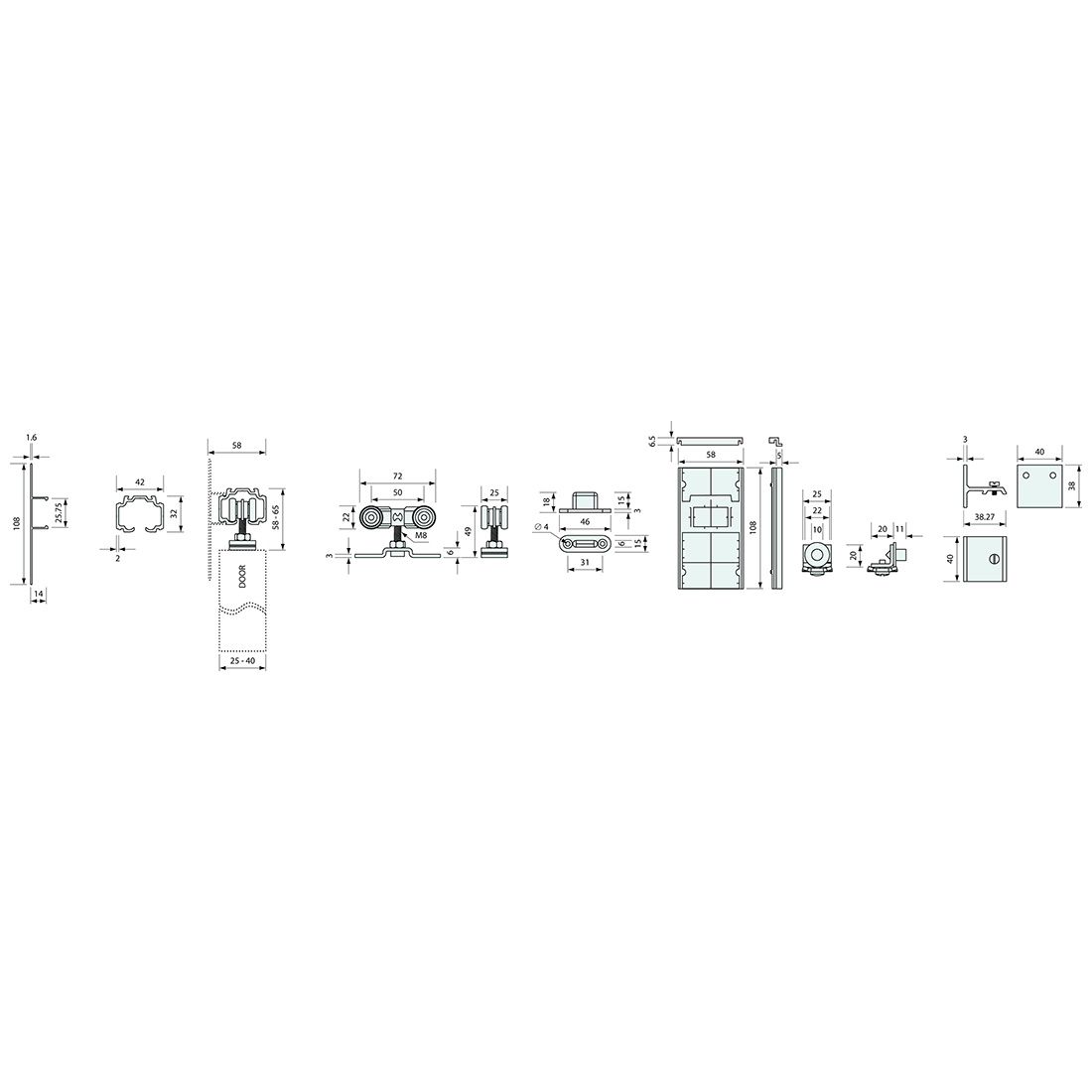 Sliding Door Track With Kit and Pelmet White 2400mm 100kg Load
