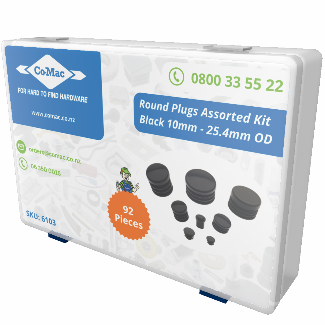 Round Plugs Assorted Kit Black 10mm - 25.4mm OD